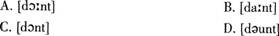 解析 考查语音知识。“don’t”这个缩略词的正确发音为D项。