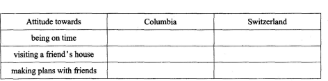 问题 根据提供的信息和语言素材设计教学方案。用英文作答。 设计任务:请阅读下面学生信息和语言素材,设计15分钟的英语阅读教学方案。 该方案没有固定格式。但须包含下列要点: ·teaching objectives ·teaching contents ·key and difficult points ·major steps and time allocation ·activities and justifications 教学时间:l5分钟 学生概况:某城镇普通中学初中三年级(九年级)学生,班级人数40人,多数学生已经达到《义务教育英语课程标准(2011年版)》四级水平。学生课堂参与积极性一般。 语言素材: Different Customs in Different Countries I′m from Colombia; we′re pretty relaxed about time. If you tell a friend you′re going to theirhouse for dinner, it′s okay if you arrive a bit late. Spending time with family and friends is veryimportant to us. We often just drop by our friends′ homes. We don′t usually have to make plans tomeet our friends. Often we just walk around the town center, seeing as many of our friends as we can! In Switzerland, it′s very important to be on time. We′re the land of watches, after all! Ifsomeone invites you to meet them at 4:00, you have to be there at 4:00. If you′re even fifteenminutes late, your friend may get angry. Also, we never visit a friend′ s house without calling first. We usually make plan to see friends. We usually plan to do something interesting, or go somewheretogether.