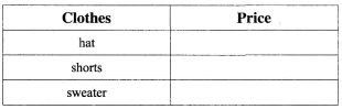 解析 Teaching Contents: This lesson is a dialogue about asking and answering the price of clothes. Teaching Objeetives: (1) Knowledge objective Students can recognize the new words "hat, shorts, sweater, dollars" and understand the meaning of the sentence patterns "How much is/are ...? ... is/are ...". (2) Ability objectives ① Students will be able to ask and answer the price of clothes using the sentence patterns in real life. ②Students will improve the skills of listening for the gist and listening for specific information. ③ Emotional objective Students can establish a correct view of consumption and have the awareness of cooperative learning. Teaching Key and Difficult Points: Students can use the new words and sentence patterns to ask about the price of clothes. Major Steps: Step 1 Pre-listening (3 minutes) Task 1 Teaching new words The teacher uses PPT to show some pictures of the new words "hat, shorts, sweater, dollars", then explains the new words in English. (Justification: The new words learning can pave the way for students' later listening activity and they will understand the conversation easily.) Task 2 Word practice game: High and low voice The teacher uses different tones to read these words and the students read after the teacher. (Justification: The game can help students memorize the words easily.) Step 2 While-listening (12 minutes) Firstly, the teacher plays the tape and asks students to summarize the main idea of the conversation, then asks several students to talk about it. Secondly, the teacher asks students to listen to the tape again. At this time, they should fill in the following form: Thirdly, the teacher divides the whole class into five groups. Then makes students listen to the tape again, and asks each group to repeat it after each sentence in turn. Then the teacher provides the sentence patterns "How much is/are ...? ... is/are ..." on the PPT. (Justification: In this step, students' skill of listening for the gist and specific information will be well developed. Through listening they will know the main sentence patterns clearly.) Step 3 Post-listening (5 minutes) Task 1 Matching The teacher uses PPT to show some pictures of clothes on the right and asks students to do a match with the reasonable price on the left. And then students make their dialogues with partners using the sentence patterns "How much is/are ...? ... is/are ...". (Justification: Students will improve their speaking ability by using the sentence "How much is/are ...? ...is/are ...".) Task 2 Role play The teacher asks students to do a role play in groups. One student acts as the shop assistant and the others act as customers. They should act out the dialogue clearly and correctly. The group which performs best will get the reward. (Justification: This step will improve students' cooperative learning and presentation skills.)