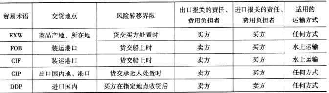 按中价格术语的排列顺序,从上到下买方承担的责任和风险越来越少,卖方承担的责任和风险越来越大。
