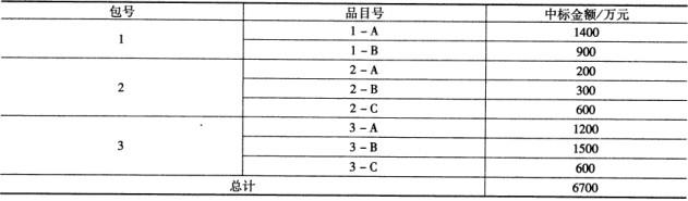 (1)某国家重点实验项目拟采购一批实验设备、器材,批复资金预算为6800万元人民币,按采购设备的类型分为3个包共8个品目,最终中标情况如表所示。
