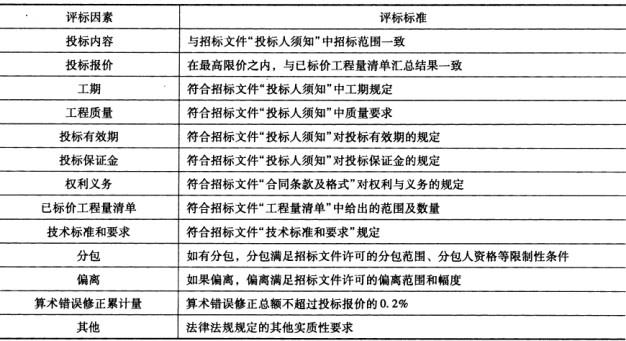 ③响应性评审。响应性评审标准如表3 -6-19所示。