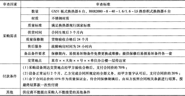开封市政府水利局采用政府财政资金一次性采购1 2台换热器,该项目采购预算超过了政府采购限额标准。相关要求如表3 -6 -28所示。