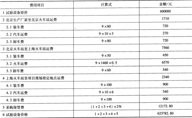 (1)试验设备重量为9t,试验设备生产厂家的交货价格为60万元/台;