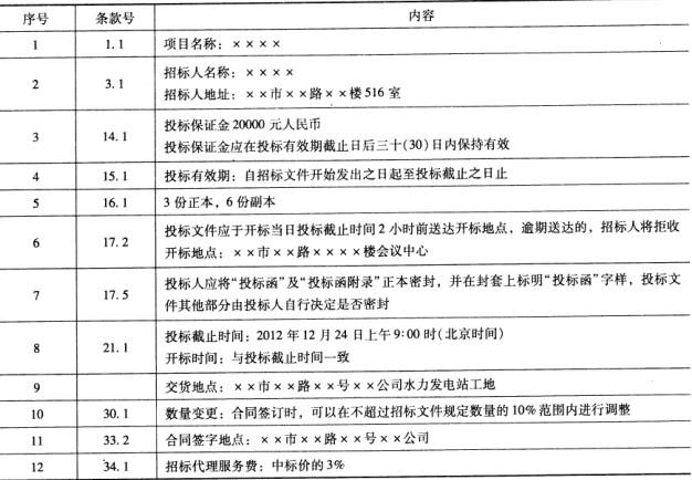 南方某市为了保护环境、保障城市用电,拟利用市水资源修建一座小型水力发电站。拟采用国内公开招标采购方式,采购估算价分别为80万、1 60万人民币的水轮机和发电机设备,政府委托某招标代理机构代理此次招标工作,其招标文件投标人须知前附表填写的部分内容见表3-4-3。