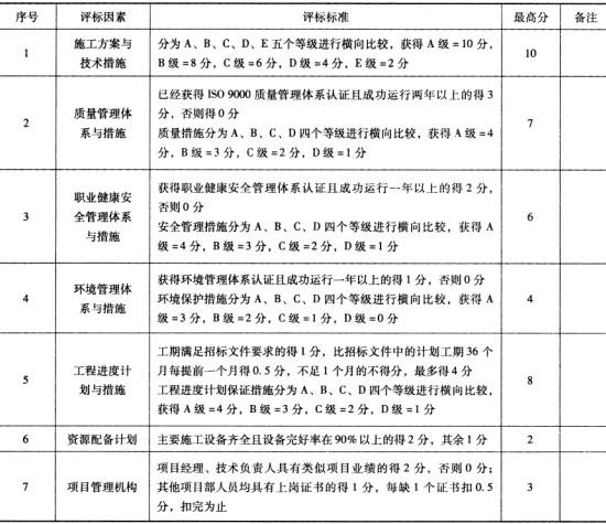 (1)施工组织设计及项目管理机构40分。施工组织设计及项目管理机构评标因素及评标标准如表4 -7-8所示。