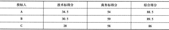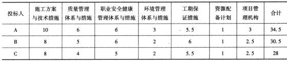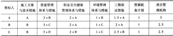 某涉及抢险救灾房屋的建筑工程,经过项目审批部门核准,拟采用邀请招标的方式确定施工承包人。该工程由于受自然地域环境的限制,施工技术复杂、难度大,对承包人以往类似工程业绩和施工设备要求较高。招标人经过考察,向A、B、C三家施工企业发出了投标邀请书,这三家企业均具备房屋建筑工程施工总承包特级施工资质,且均为国有大型施工企业,招标文件中确定的评标标准为: