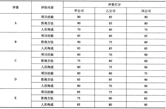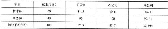 甲、乙、丙三家咨询公司的投标报价中,乙公司最低,计为1 00分;
