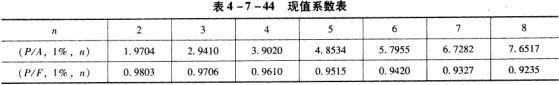 2.如果考虑资金时间价值,就乙、丙两家投标单位而言,业主应优先选择哪家投标单位?为什么?(注:现值系数见表4 -7 -44)