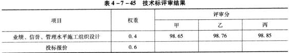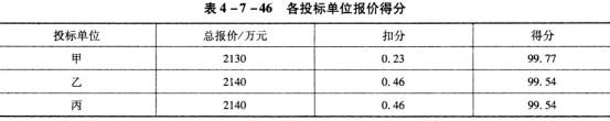 3.(1)计算各投标单位报价得分如表4-7 -46所示。