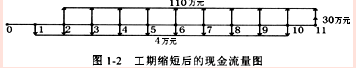工程款结算与提前竣工奖的现金流量图如图1-3所示。