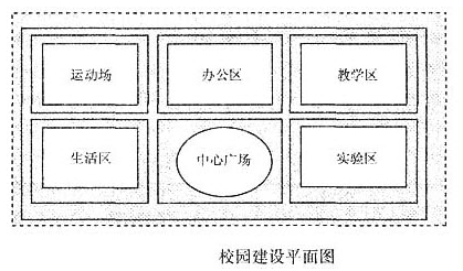 办公区与教学区、生活区、试验区、休闲区中间均由校园道路相区隔,平面图见下图。
