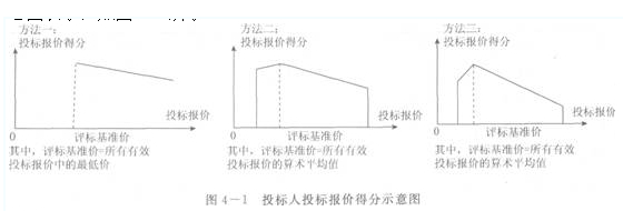 在编制招标方案和招标文件的过程中,招标人拟采用不同的计算方法计算上述三个标包中投标人投标报价得分,用示意图表示,如下图所示。