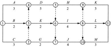问题 双代号网络计划如图2-5所示(时间单位:天),其关键路径有()条。