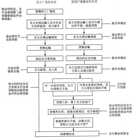 解析 货物的交接验收的一般程序见图3-1。①工厂交付方式②用户现场交付方式