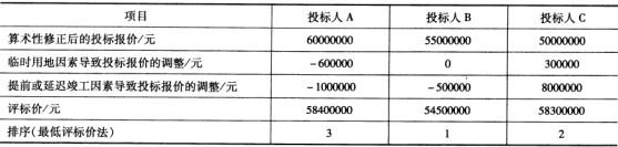 某工程施工项目采用资格预审方式招标,并采用经评审最低投标价法进行评标。共有3个投标人进行投标,且3个投标人均通过了初步评审,评标委员会对经算术性修正后的投...
