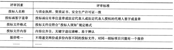 解析 1.开标是招标人在投标截止时间的同一时间和招标文件规定的开标地点组织公开开标,公布投标人名称、投标报价以及招标文件规定的其他唱标内容。它是招投标活动的一项重要程序。 招标人应按照招标文件规定的程序开标,一般开标程序具体如下: (1)宣布开标纪律。主持人宣布开标纪律,对参加开标会议的人员提出要求,如开标过程中不得喧哗;通信工具调整到静音状态;约定的提问和异议方式等。任何人不得干扰正常的开标程序。 (2)宣布有关人员姓名。开标会议主持人介绍招标人代表、监督人代表等,依次宣布开标人、唱标人、记录人、监标人等有关人员。 (3)确认投标人代表身份。招标人可以按照招标文件的规定,当场核验参加开标会议的投标人授权代表的授权委托书和有效身份证件,确认授权代表的有效性,并留存授权委托书和身份证件的复印件。如果法定代表人出席开标会的,应出示共有效证件。 (4)公布在投标截止时间前接收投标文件的情况。招标人当场宣布投标截止时间前递交投标文件的投标人名称、时间等,以及投标人撤回投标的情况。 (5)检查投标文件的密封情况。依据招标文件规定的方式,检查和确认投标文件的密封,主持人应当组织全部的投标人代表自己检查确认其投标文件的密封状况,其目的在于检查开标现场的投标文件密封状况是否与投标文件递交和接受时的密封状况一致,如有疑问或异议应当场、当时提出。 (6)宣布投标文件开标顺序。主持人宣布开标顺序。如招标文件未约定开标顺序的,一般按照投标文件递交的顺序或逆序进行唱标。 (7)公布标底。招标人设有参考标底的,予以公布,也可以在唱标后公布标底。 (8)唱标。按照宣布的开标顺序当众开标。唱标人应按照招标文件约定的唱标内容,严格依据投标函(或包括投标函附录,或货物、服务投标一览表)唱标,并当即做好唱标记录。 (9)确认开标记录。 (10)开标结束。 2.该项目施工招标在以下方面不符合《招标投标法》的有关规定: (1)该项目招标公告中对本地和外地投标人的资质等级要求不同是错误的,这属于“以不合理的条件限制或者排斥潜在投标人”。 (2)投标截止时间过短,按规定,自招标文件发出之日起至投标人提交投标文件截止之日时,最短不得少于20天。 (3)评标委员会的名单在中标结果确定之前应当保密,而不应在开标时宣布;评标委员会的人数应为5人以上单数,不应为8人;其中技术、经济专家不少于总数的2/3,而该项目招标中仅为5/8。 3.工程施工招标项目初步评审分为形式评审、资格评审和响应性评审。其中,形式评审的评审因素及评审标准如表8 -2所示。