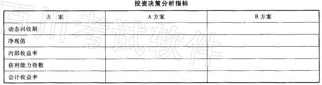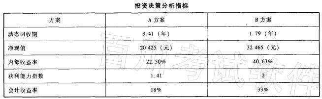 某企业拟投资购建一套新设备,有A、B两个备选方案,有关资料见下表:要求:(1)根据上述资料,分别计算A、B方案的投资分析指标,并填列在下表中,...