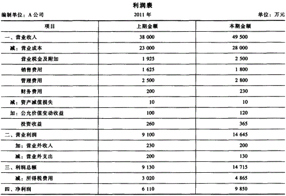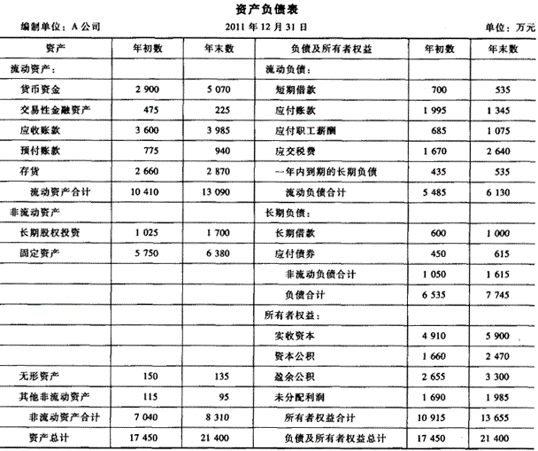 资料:A公司2011年12月31日资产负债表和利润表如下: