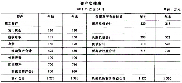 该企业2011年流动负债中包含短期借款50万元,2011年年营业收入1500万元,营业净利率20%。假定该企业流动资产仅包括速动资产与存货。