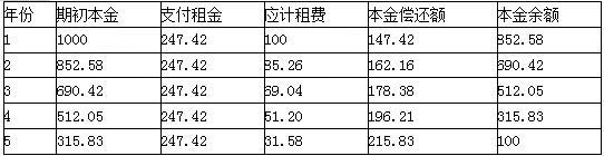 解析 (1)折现率=8%+2%=10%   (2)每年租金=[1000-100×(P/F,10%,5)]/(P/A,10%,5)   =(1000-100×0.6209)/3.7908   =247.42(万元)   (3) 【注】表中数据使用EXCEL的财务函数计算得出。   (4)每年租金(预付年金)=247.42/(1+10%)=224.93(万元)