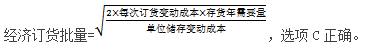 根据经济订货批量的基本模型,下列各项中,可能导致经济订货批量提高的是(  )。A.对存货的总需求降低 B.每次订货费用降低 C.单位存货存储费降低 ...