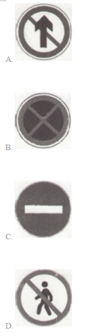 问题 交通标志已经成为现代生活的一部分,在保证道路交通安全、顺畅方面有着重要作用,分为主标志和辅助标志两大类。主标志包括禁令标志、警告标志、指路标志、指示标志等。下列选项中,表示“禁止直行”的标志是()。