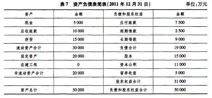 解析 (1)单位变动资金(b) =(5 100 -4 140)/(38 000-26 000) =0.08 不变资金(a) =4 140-26 000x0.08 =2060(万元) 现金预测模型:y = 2 060 + 0.08x 2012 年现金需要量=2 060+0.08 X 37 500 X (1 -20%) = 4 460(万元) (2)2012 年存货资金需要量=37 500 X (1 -20%) x40% =12 000(万元) 2012年应付账款需要量=37 500 X (1 -20% ) x20% =6 000(万元) (3)固定资产账面净值=20 OOO -8 OOO -600 = 11 400(万元) 在建工程期末余额=10 OOO万元 (4)2012 年销售净利率=(3 000/37 500) x (1 -5% ) =7.6% 2012 年留存收益增加额=37 500 X (1 -20%) x7. 6% x (1 - 50% ) = 1 140(万元) (5)①丁项目各年净现金流量: NCFO = -10 000 万元 NCFl =-5 OOO 万元 NCF2 =O NCF3 ~11 =4 OOO 万元 NCF12 =4000+750 =4 750 (万元) 包括建设期的静态投资回收期=2+ (10 OOO + 5 OOO)/4 OOO = 5.75 (年) ②项目净现值=-10 OOO - 5 OOO X (P/F, 10% , 1) +4 000 X (P/A,10%. 10) x (P/F,10%,2) +750 x (P/F, 10%,12) = - 10 OOO -5 OOO x0.909 1 +4 000 x 6.144 6 x0.826 4+750 xO. 318 6 = 6 005.04(万元) ③由于项目净现值大于零,包括建设期的静态投资回收期5. 75年小于项目计箅 器的一半12/2 = 6,因此该项目完全具备财务可行性。 (6)债券资本成本=9% x(l -25%)/(1 -2%) =6.89%