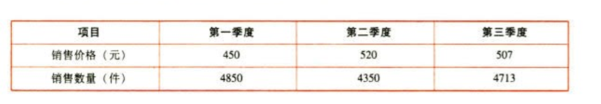 问题 某企业生产销售某产品,2019年前三个季度中,实际销售价格和销售数量如下表所示。