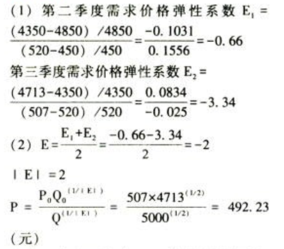 假设企业在第四季度要完成5000件的销售任务。 要求: (1)分别确定第二季度和第三季度需求价格弹性系数。 (2)利用平均需求价格弹性系数,预计第四季度的价格