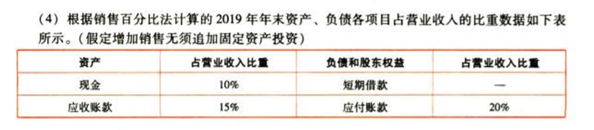 问题 F公司为一上市公司,有关资料如下。资料一: (1)2019年度的营业收入为10000万元,营业成本为7000万元。2020年的目标营业收入增长率为100%,且营业净利率和股利支付率保持不变。适用的企业所得税税率为25%。 (2)2019年度相关财务指标数据如下表所示。