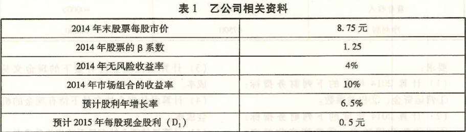 问题 乙公司是一家上市公司,该公司2014年末资产总计为10000万元,其中负债合计为2000万元。该公司适用的所得税税率为25%。相关资料如下: 资料一:预计乙公司净利润持续增长,股利也随之相应增长。相关资料如表1所示: