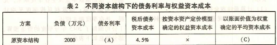 资料二:乙公司认为2014年的资本结构不合理,准备发行债券募集资金用于投资,并利用自有资金回购相应价值的股票,优化资本结构,降低资本成本。假设发行债券不考虑筹资费用,且债券的市场价值等于其面值,股票回购后该公司总资产账面价值不变,经测算,不同资本结构下的债务利率和运用资本资产定价模型确定的权益资本成本如表2所示: