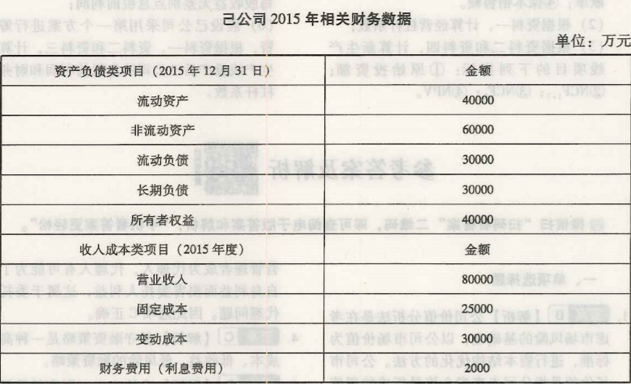 问题 己公司是一家饮料生产商,公司相关资料如下: 资料一,已公司2015年相关财务数据如下表所示,假设己公司成本性态不变,现有债务利息水平不变。