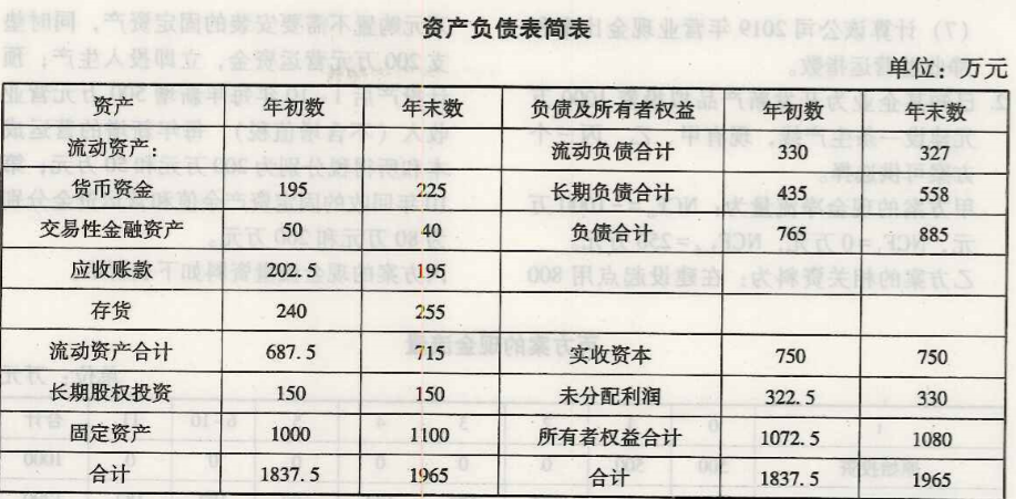问题 某公司2019年的有关资料如下。 (1)2019年12月31日资产负债表简表 如下。