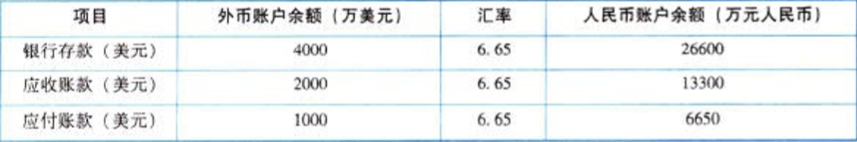 解析 (1)外币兑换产生的汇兑损失= 100x6. 62-100x6. 60=2 (万元人民币)。 借:银行存款(人民币)660( 100x6.60) 财务费用一汇兑差额2 贷:银行存款(美元)662( 100x6.62) (2)收到应收账款产生的汇兑损失=1000x6. 65- 1000x6.58= 70 (万元人民 币)。 借:银行存款(美元)6580( 1000x6.58) 财务费用一汇兑差额70 贷:应收账款(美元)6650( 1000x6. 65) (3)期末银行存款汇兑损失= ( 26600 -100x6.62+ 1000x6.58)一( 4000- 100+1000) x6.56=374 (万元人民币);期末应收账款汇兑损失= (13300 期初应收账款账面余额+4000x6.60当月增加的应收账款,按照增加当天的即期汇率计算一1000x6. 65当月减少的应收账款,因为偿还的是期初的应收账款,所以是按照期初应收账款的即期汇率计算) - (2000+4000- 1000)外币应收账款余额x6.56期,末即期汇率=250 (万元人民币);期末应付账款汇兑损失= (1000+2000) x6. 56-(6650+ 2000x6.61) = -190 (万元人民币)。 借:财务费用一汇兑差额434 应付账款(美元)190 贷:银行存款(美元)374 应收账款(美元)250