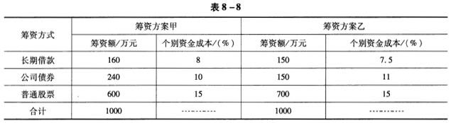 问题 共用题干某公司拟筹资1000万元创建一子公司,现在甲、乙两个备选筹资方案,其相关资料经测算列入表8-8,甲、乙两个方案的其他情况相同。 根据以上资料,回答下列问题: