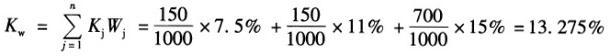 解析 乙方案的加权平均资金成本率为:,则其加权平均资金成本为:13.275%*1000=132.75(万元)。式中,Kw为综合资本成本率;Kj为第j种资本成本率;Wj为第j种资本比例; 甲方案的加权平均资金成本率为:,其加权平均资金成本为:12.68%*1000=126.8(万元)。甲方案的加权平均资金成本比乙方案小,所以该公司应选择甲方案进行筹资。