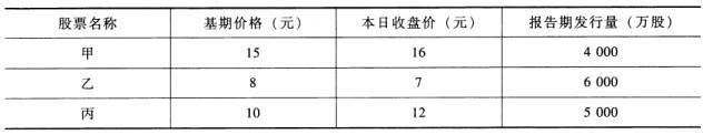 问题 已知三种股票的价格和发行量资料,如下表所示。根据上述资料,计算股票价格指数的结果是()。