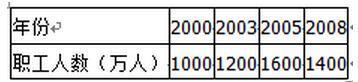 问题 某行业2000年至2008年的职工数量(年底数)的记录如下:则该行业2000年至2008年平均每年职工人数为( )。