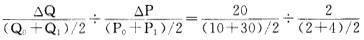 解析 商品价格4元时,即P0=4时,Q0=50-10*4=10;P1=2时,Q1=50-10*2=30。弧弹性的计算公式为:Ed==1.5。