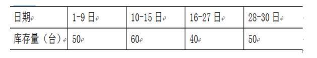 问题 某超市2013年6月某商品的库存量记录见下表,该商品6月份的平均日库存量是( )台。