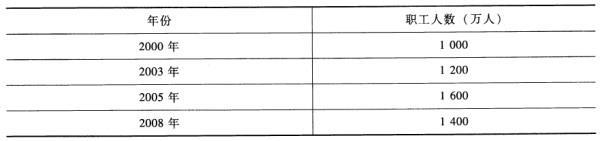 问题 某行业2000年至2008年的职工数量(年底数)的记录如下: 则该行业2000年至2008年平均每年职工人数为()万人。