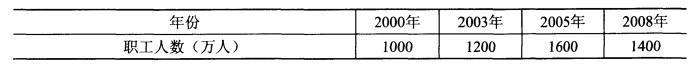 问题 某行业2000?2008年的职工数量(年底数)的记录如下: 则该行业2000年至2008年平均每年职工人数为( )万人。