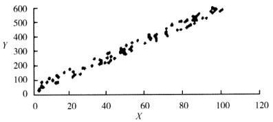 解析 观测点密集在一条直线周围,表现为较强的线性相关。由图可知Y值随着X增大而增大,二者正相关。