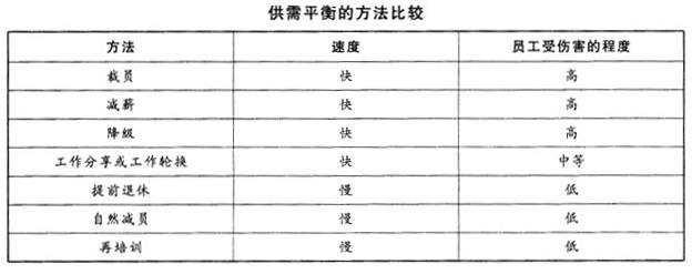 问题 下列人力资源供需平衡方法中,速度快、员工受伤程度中等的是()。