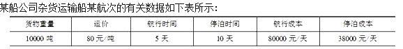 解析 该货船的船舶航次总成本K次的计算公式为:K次=K航t航+K停t停,求得航次成本=80000*5+38000*10=780000(元)。