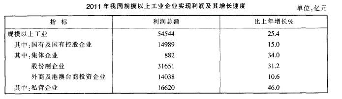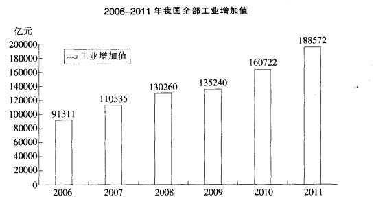 2011年我国全部工业增加值188572亿元。规模以上工业增加值增长13,9%,在规模以上工业中,国有及国有控股企业增长9.9%;集体企业增长9.3%,股...