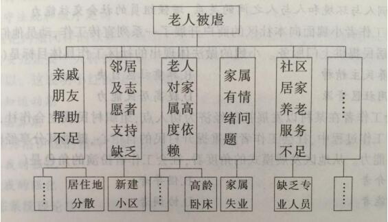 问题 社会工作者小李发现社区内的个别家庭存在虐待老人现象。 针对该问题,小李要制定 一个合理有效的服务方案,他首先进行了问题分析,如下图所示: 小李运用的认识和分析问题的方法是( )。