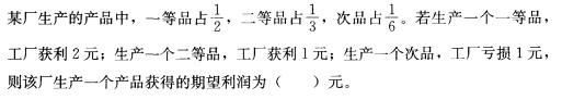 解析 。E(X) = (1/2)×2十(1/3)×1 + (1/6)×( -1) = 7/6。